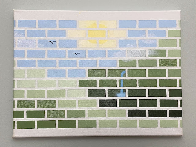 I painted 11 small vignettes of things I repeatedly enjoy, sadly excluding many TV shows that require drawing faces which I cannot do. As this is the first painting where I did extensive freehand, you can tell the quality improve as I slowly discover the right paintbrush to use. In painted order (click images to expand):